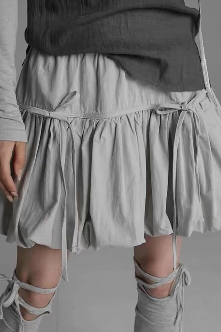리본 벌룬 스커트 그레이/블랙 미니 치마 퍼프 A라인 봄 가을 간절기 데이트룩 여친룩