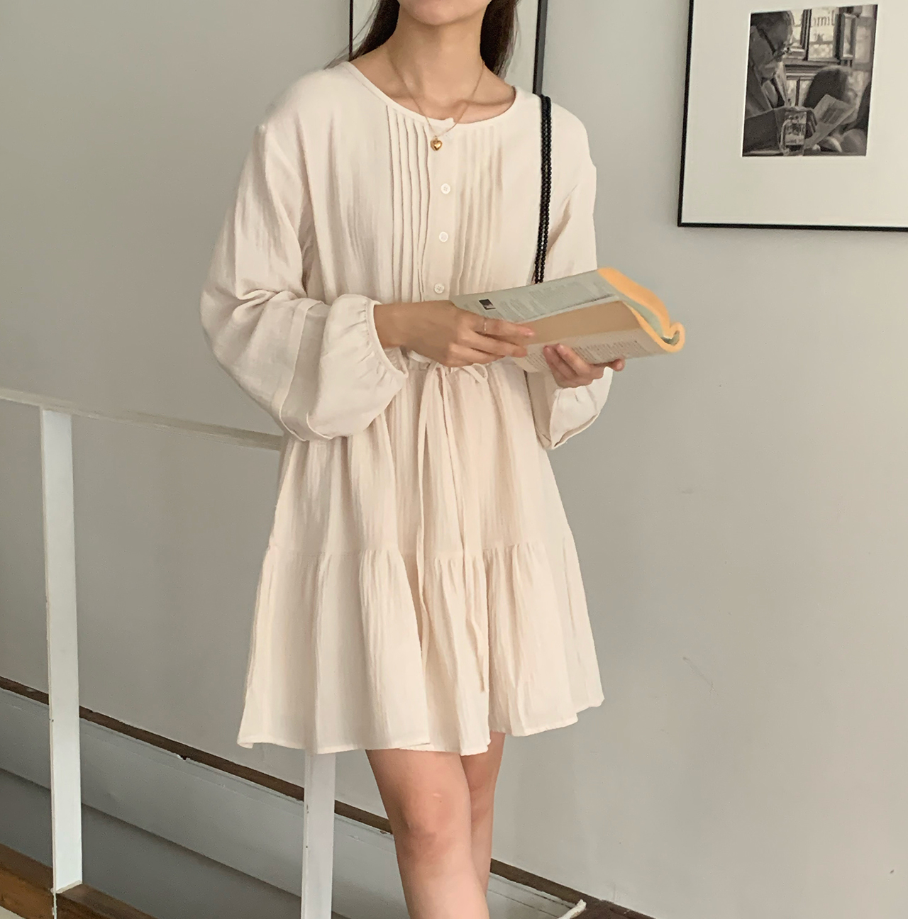 [하객룩#빅사이즈]블리 스트링 미디 캉캉 원피스