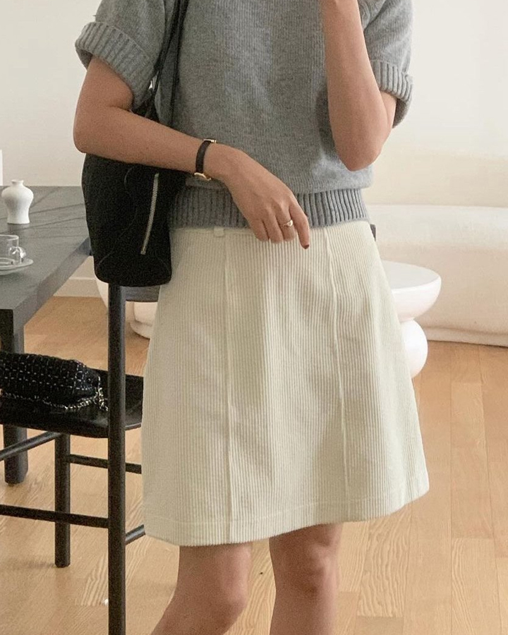 (당일)런던레이스 웨하스 골덴 스커트 심플 에이라인 미디기장 여성 데일리 절개치마(84985)