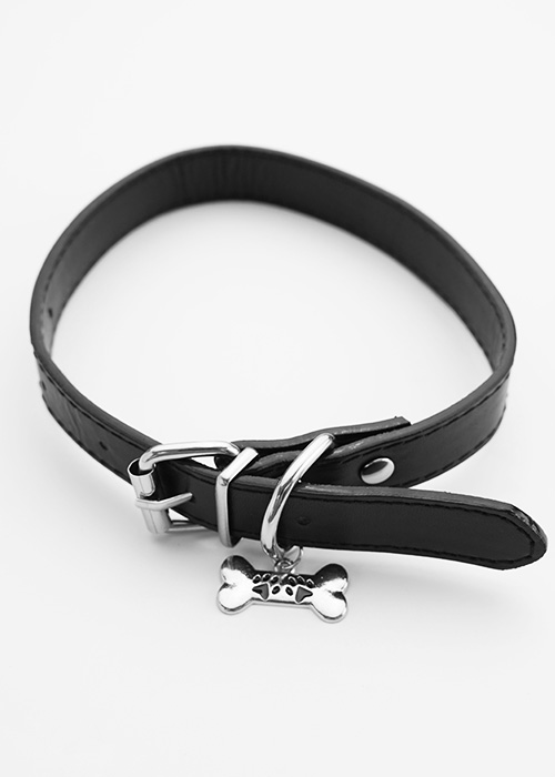 강아지 뼈 디자인 포인트 래더 블랙 가죽 벨트 초커 목걸이 N-0303