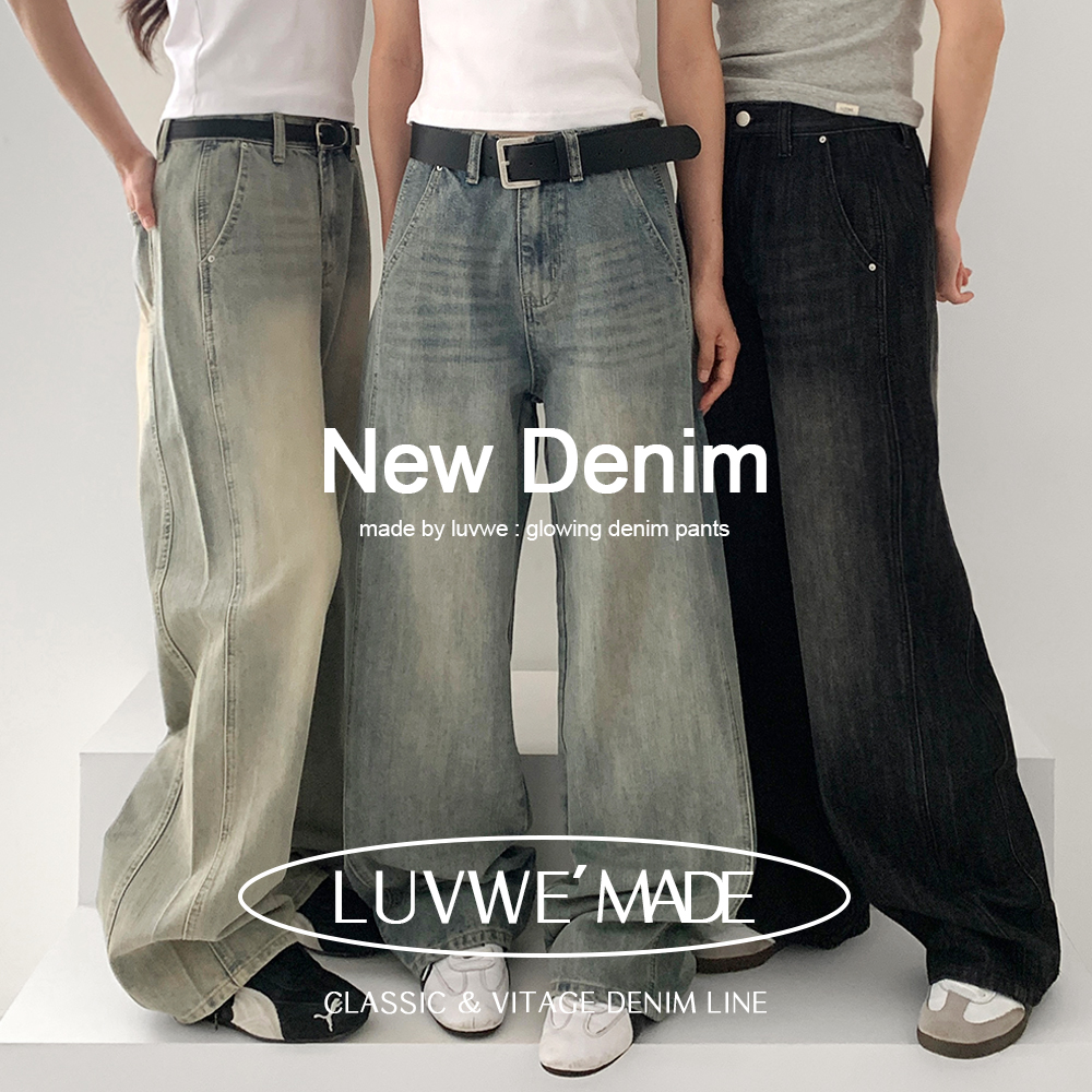 🚀당일출고/오픈특가🔥[MADE/4계절워싱청바지👖] 시즌리스 글로잉 사이드 절개 라인 빈티지 데님 와이드 팬츠 청바지 (3color)