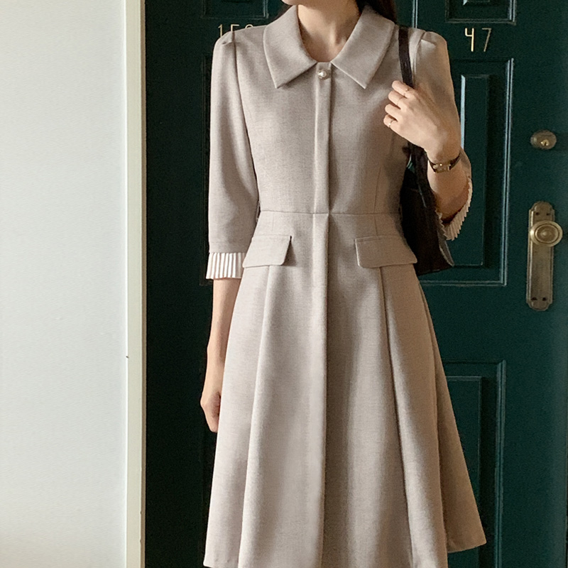 주문폭주 [벨트set] 배색 소매 벨트 플레어 롱 원피스 데이트룩,데일리룩,나들이룩,모임룩,출근룩,하객룩 op15862