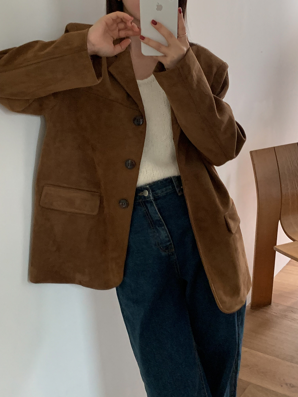 레오르 스웨이드 카라 하프 자켓 (2color)