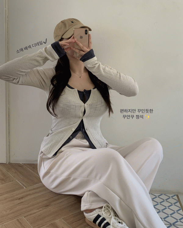[무료배송]시선 골지 레이어드 배색 단추 가디건 티셔츠4color