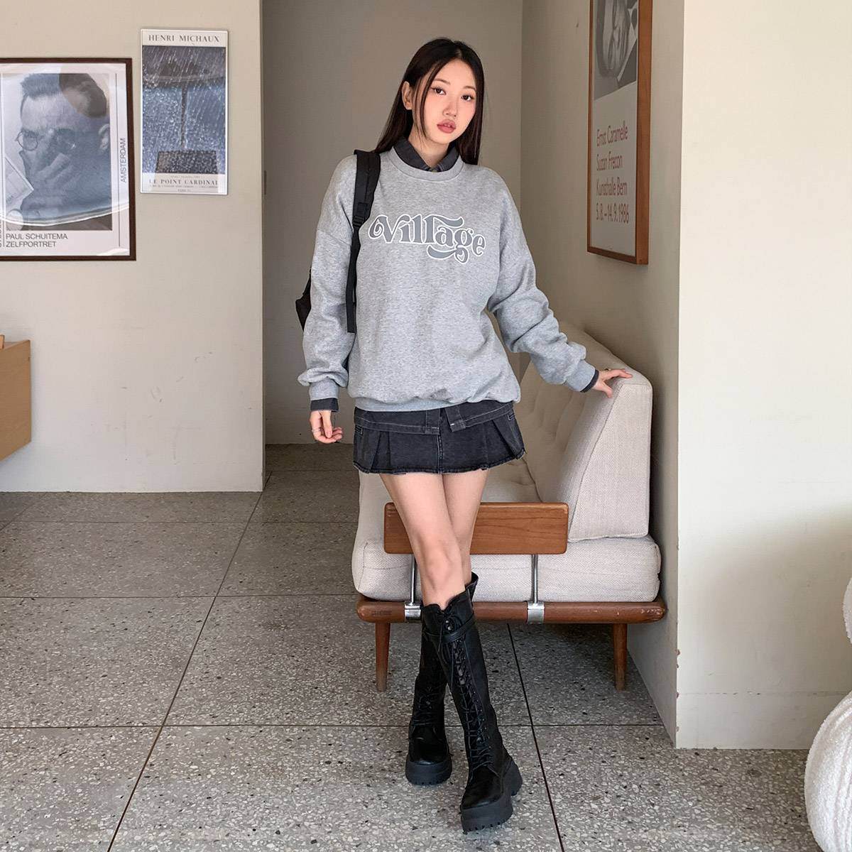 기모 맨투맨 긴팔 티셔츠 가을 겨울 레터링 프린팅 백염 그레이 블랙