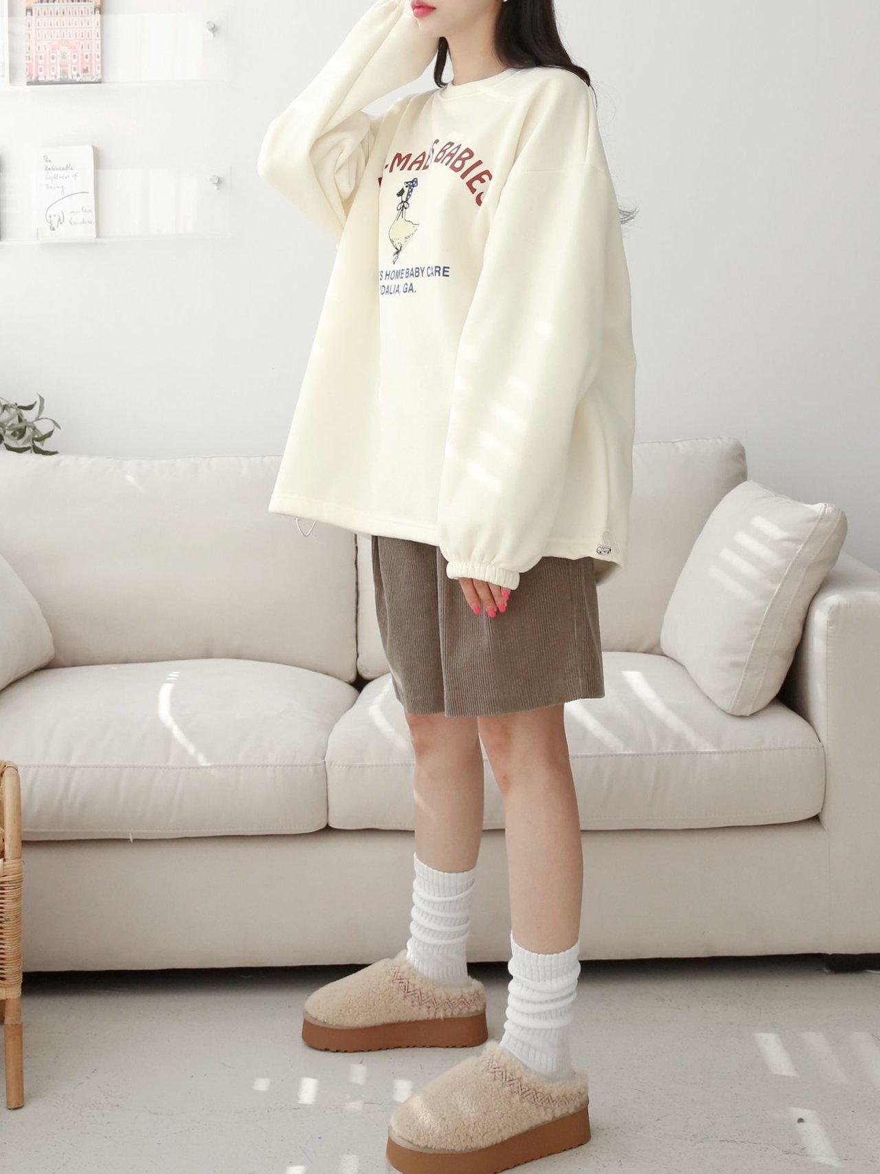 기모 겨울 맨투맨 빅사이즈 루즈핏 임산부 박시티 스트링 티셔츠