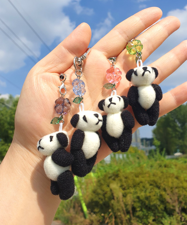 🎀당일출고[1마리]클로버 미니 판다 솜인형 폰줄 키링 책갈피 북마크 독서 커플 우정 선물 휴대폰 핸드폰 다이어리 다꾸 폰꾸 하트 부착 고리 걸이 스트랩 벨벳 연두 블랙 소라 핑크