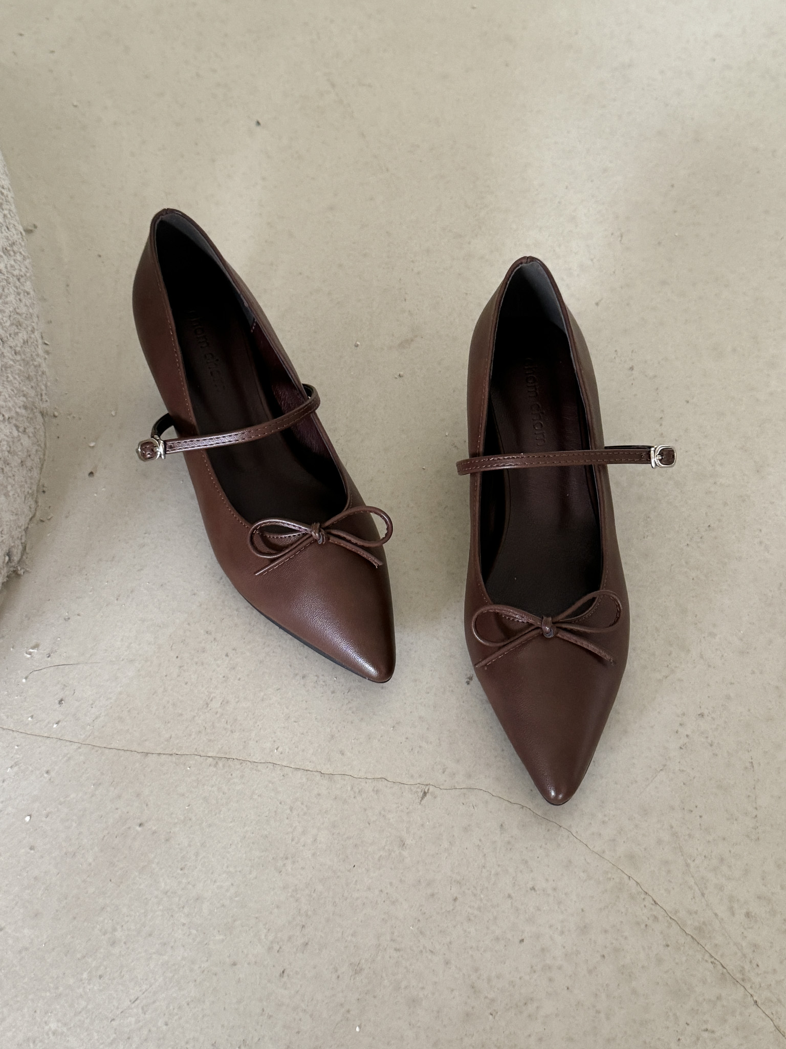 스틸레토 발등스트랩 리본펌프스힐 뾰족구두 하이힐 5cm