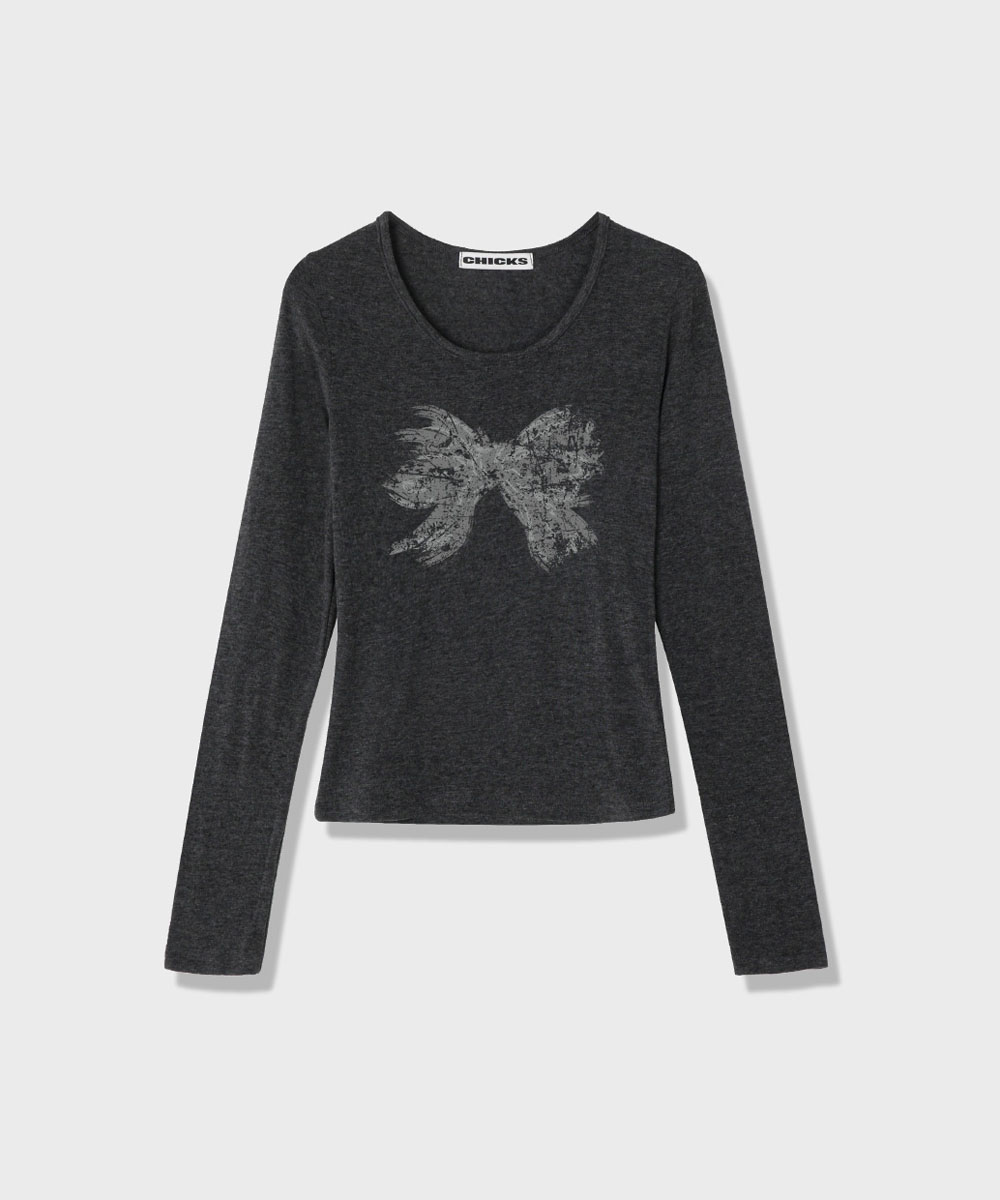 [칙스] Scratch ribbon 롱 슬리브 티셔츠 Charcoal