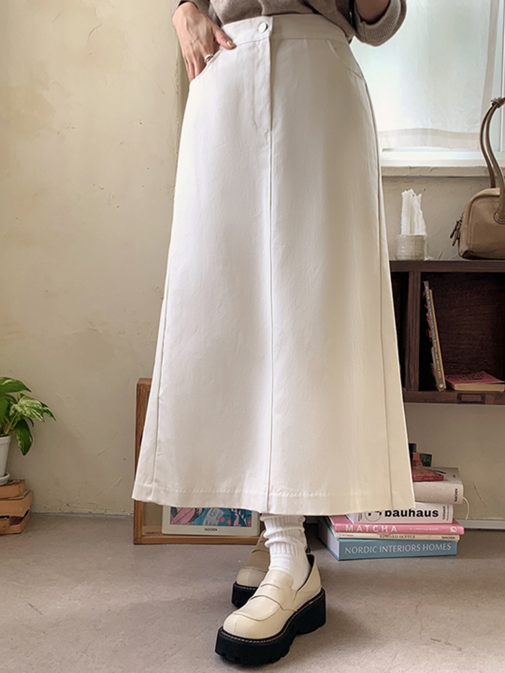[미니/롱] 리밋드빈 뒷밴딩 코튼 스커트 ( 봄-가을-겨울-데일리룩-캐주얼룩-데이트룩-출근룩-공항룩-하객룩-빅사이즈-38사이즈-자체제작-깔끔한-단정한-H라인-기본 )