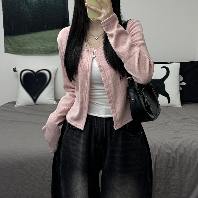 [사장님추천/가을가디건] 투버튼 세미 크롭 니트 가디건