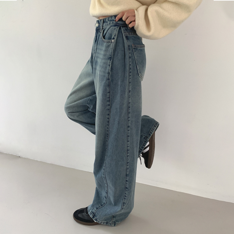 [❤️특가세일❤️][OND][사이드핀턱✨/와이드데님/와이드/핀턱데님/핀턱팬츠/출근룩/개강룩/트랜디]에토브사이드핀턱데님 - 2color