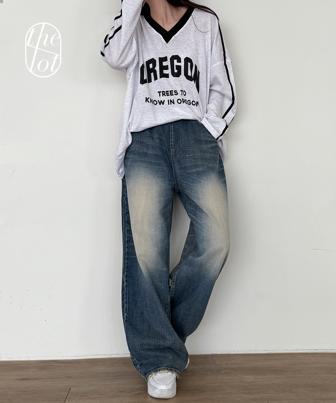 (당일) [OOTJ] 오오티제이 워시드 와이드 밴딩 데님 팬츠 (1color) 보이핏/청바지/빈티지/스트릿/스트링