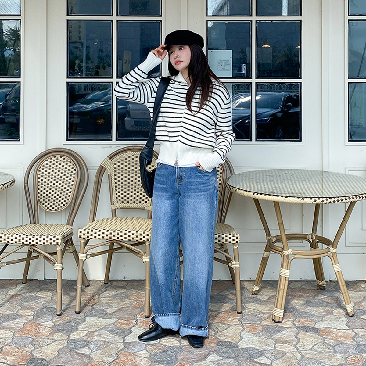 버자으 단가라 패턴 투웨이 하이넥 니트 집업