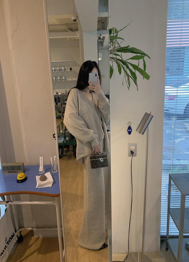 [바이베이지] 레이븐 니트 나시 가디건 와이드 팬츠 쓰리피스 세트