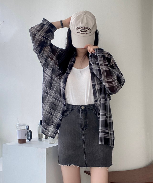 [ 1+1할인💕][여리핏/간절기템!] 찰랑 벌룬 긴팔 시스루 오버핏 체크 간절기 봄 여름 가을 남방 셔츠
