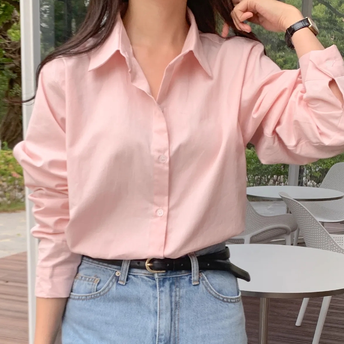 [가을신상🍂/셔츠모음전/국내제작] 무지 베이직 긴팔 셔츠 남방 블라우스 오피스 데일리 크롭 롱 오버핏 루즈핏 면 코튼 면접 화이트 흰색 갈색 브라운 핑크 검정색 블랙 올리브 그린
