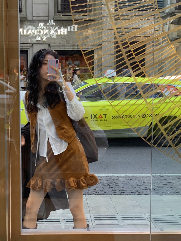 티버스 스웨이드 프릴 미니 스커트