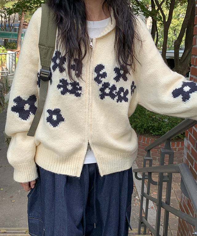 [무료배송] 마망 플라워 집업 가디건