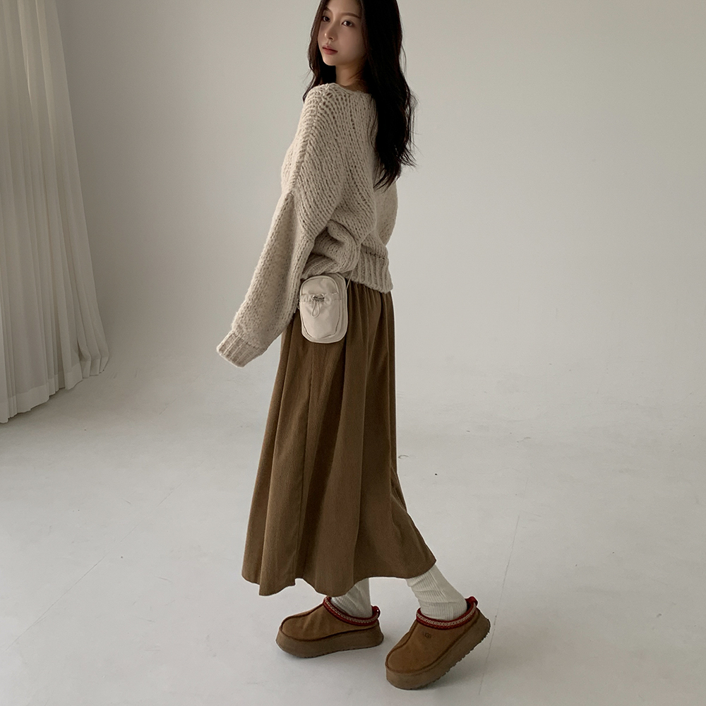 [무료배송]커프 코듀로이 롱스커트 - 핀턱 가을 겨울 골덴 허리밴딩 플레어