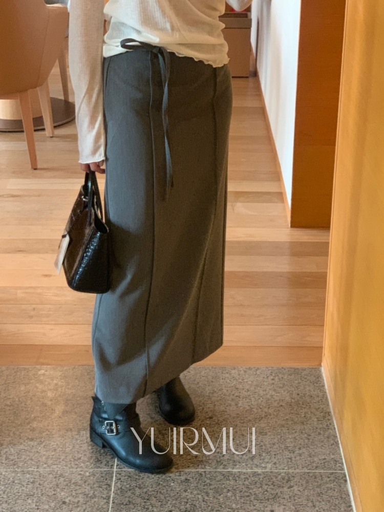 비비 핀턱 절개 리본 스트랩 H라인 맥시 롱 스커트 2color