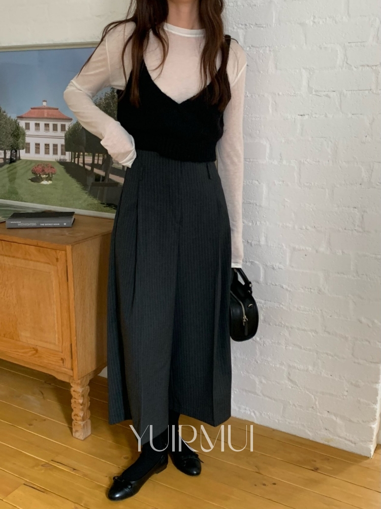 채플린 스트라이프 핀턱 버뮤다 7부 팬츠 2color