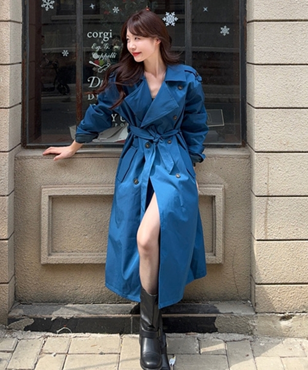 [가을신상🤎/유니크템]플라시아 코발트 블루 오버핏 트렌치 롱 코트 자켓