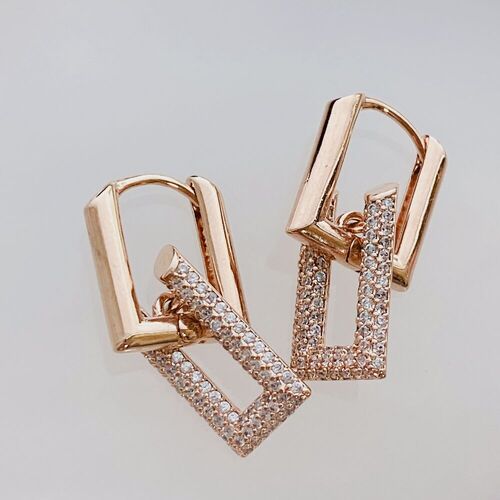 파베 큐빅 링크 드롭 스퀘어 원터치 링 귀걸이