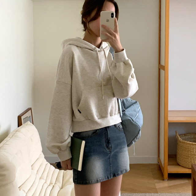 [MOMENT JOY/국내제작/아방핏] 포에드 가을 사계절 데일리 아방핏 크롭 무지 베이직 롱슬리브 후드 티셔츠