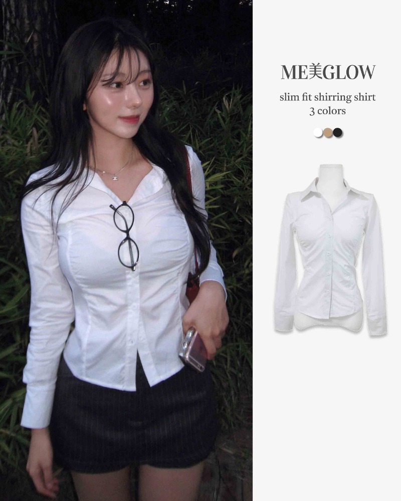 [ 핏 예술 / 스판짱짱 / 모델소장 ] 🖤 슬림 글램핏 셔링 셔츠 블라우스 3colors