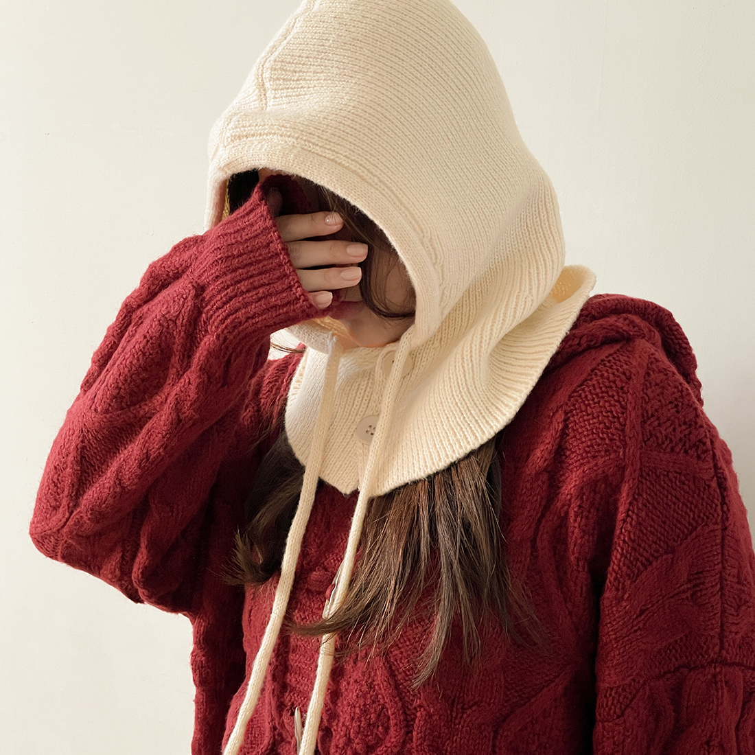 [단독] [1만원할인] 프리미엄 와이드 넓은 니트 단추 스트링 후드 바라클라바 넥워머 3color