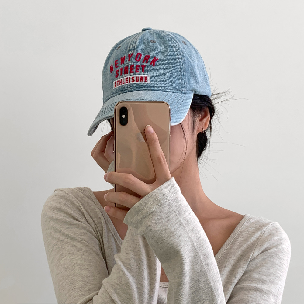 [탄탄핏] 슬릿 뉴욕 데님 레터링 자수 빈티지 청 데일리 대학생 캐주얼 볼캡 모자