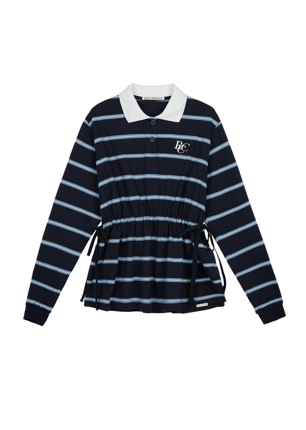 RCC 스트라이프 버튼 카라 럭비 롱슬리브 티셔츠 [네이비]