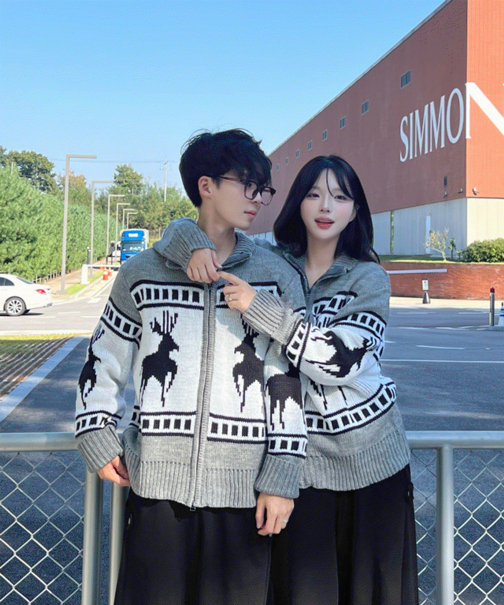 [노르딕/세트가능] 크리스마스 노르딕 코위찬 니트 집업 스냅 트레이닝 팬츠 커플룩 시밀러룩 여행 겨울 가을 여행