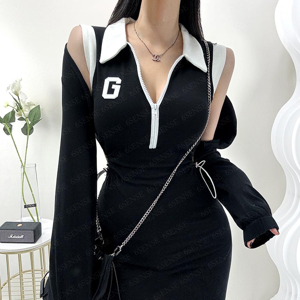 (고퀄)굿즈 로고패치 집업2PC 허리트임 면스판원피스 섹시 레이어드 볼레로 면가디건 긴팔