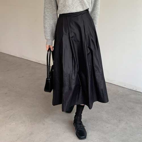 나일론 코팅 핀턱 스커트 A라인 주름 플레어 롱스커트 간절기룩 가을 검정 치마 브라운 크림