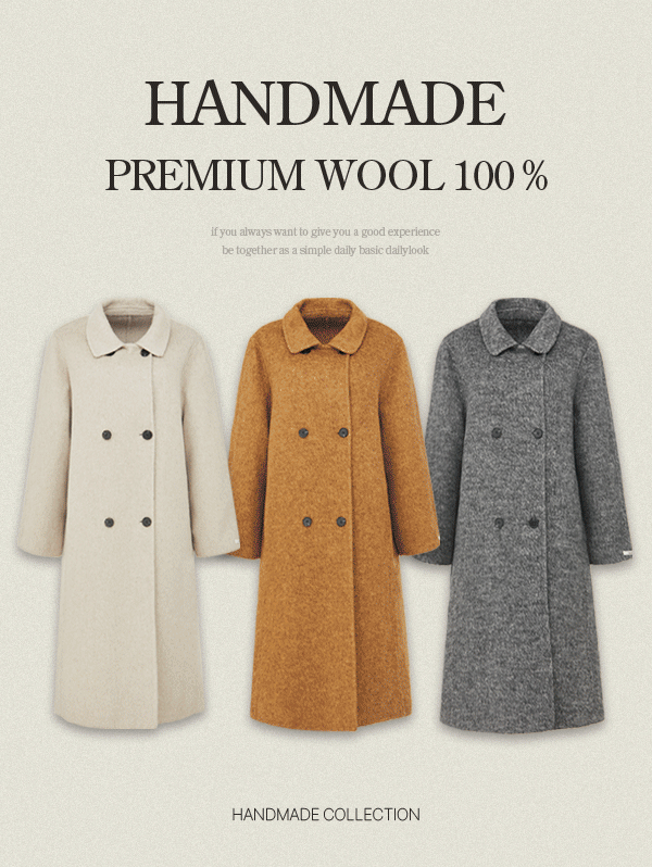 [50%즉시할인💥] 퓨레스트 울100 카라 롱 핸드메이드 코트 - 3color