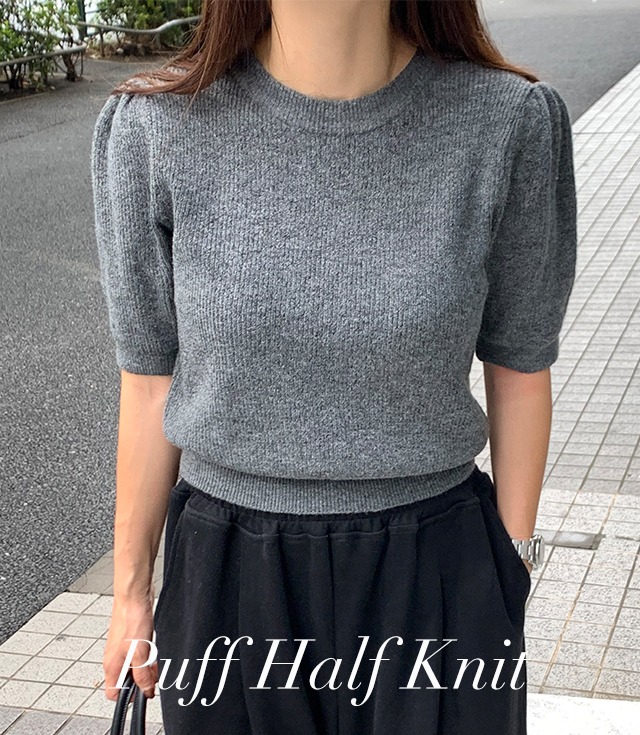 [팔뚝살커버🤍]핀드 퍼프 반팔니트(7color) [라운드넥 벌룬 5부 스탠다드]