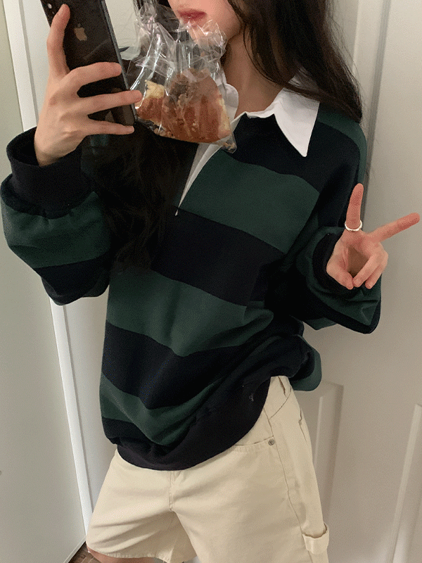 세이클럽 스트라이프 단가라 카라 맨투맨 티셔츠