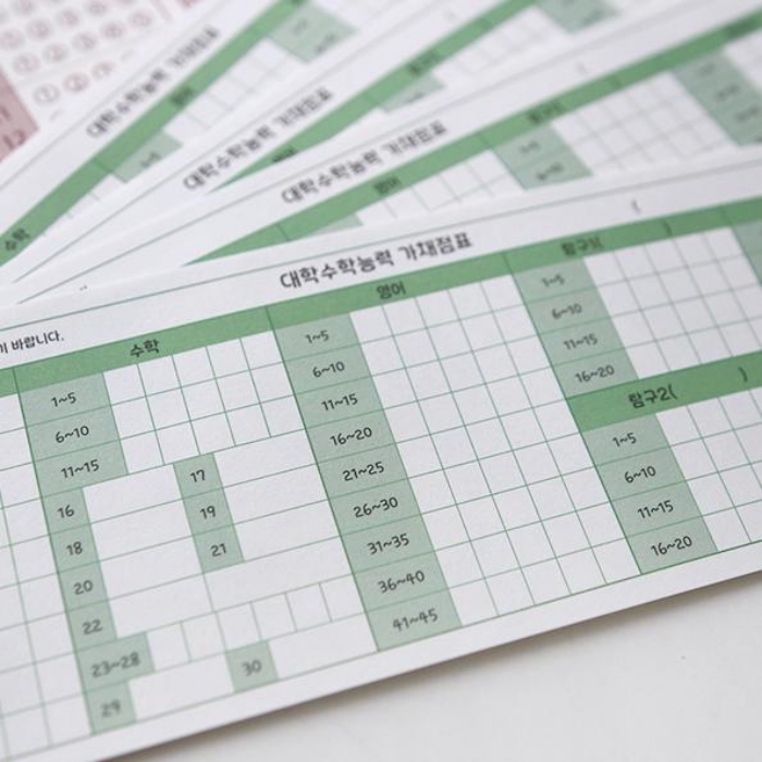 수능 행운의 네잎클로버 가채점표 스티커 2종 - 수능가채점표 뒷면 수능준비물 가채점 양식 모의고사 시험 수험표 뒤 부착 채점 대학 입시 답안지 채점표 수능가채점 수험표스티커