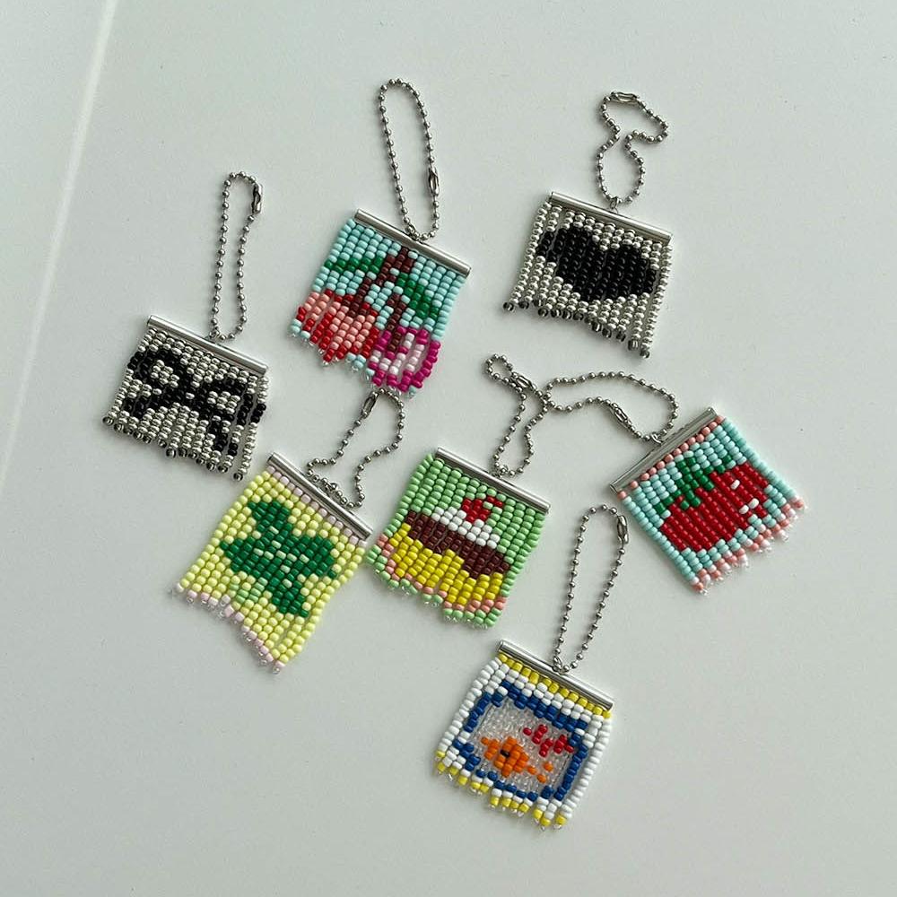 미니비즈발 키링 만들기 DIY 도안 키트 세트 - 미니 비즈발 키링만들기 도안 재료 비즈발키트 네잎클로버 토마토 푸딩 하트 리본 체리 어항 비즈키링만들기