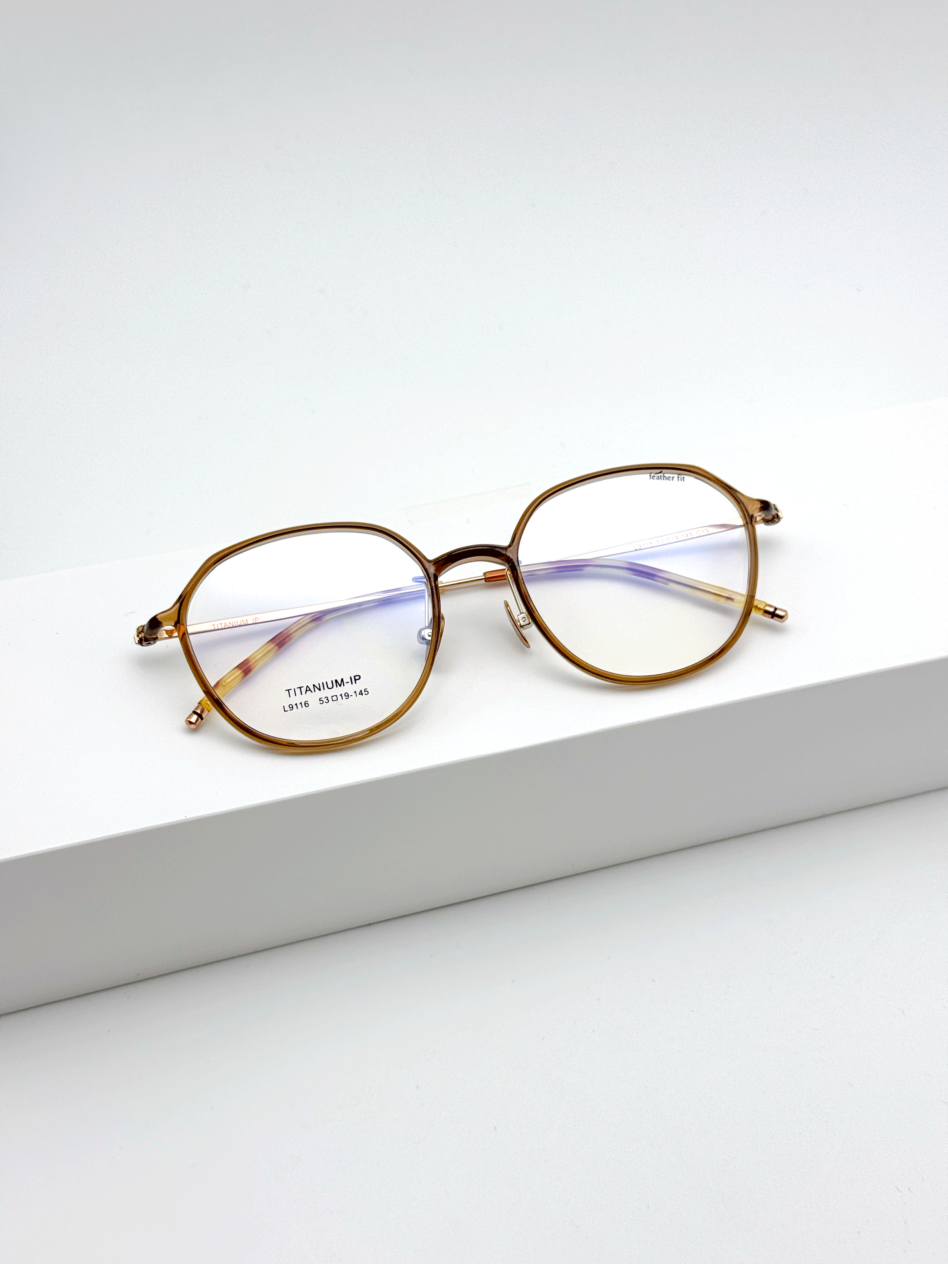 프리미엄 티타늄 다각형콤비안경 다각라운드 초경량 가벼운콤비안경테 얇은뿔테 메탈뿔테 호피 레오파드 투명 그레이