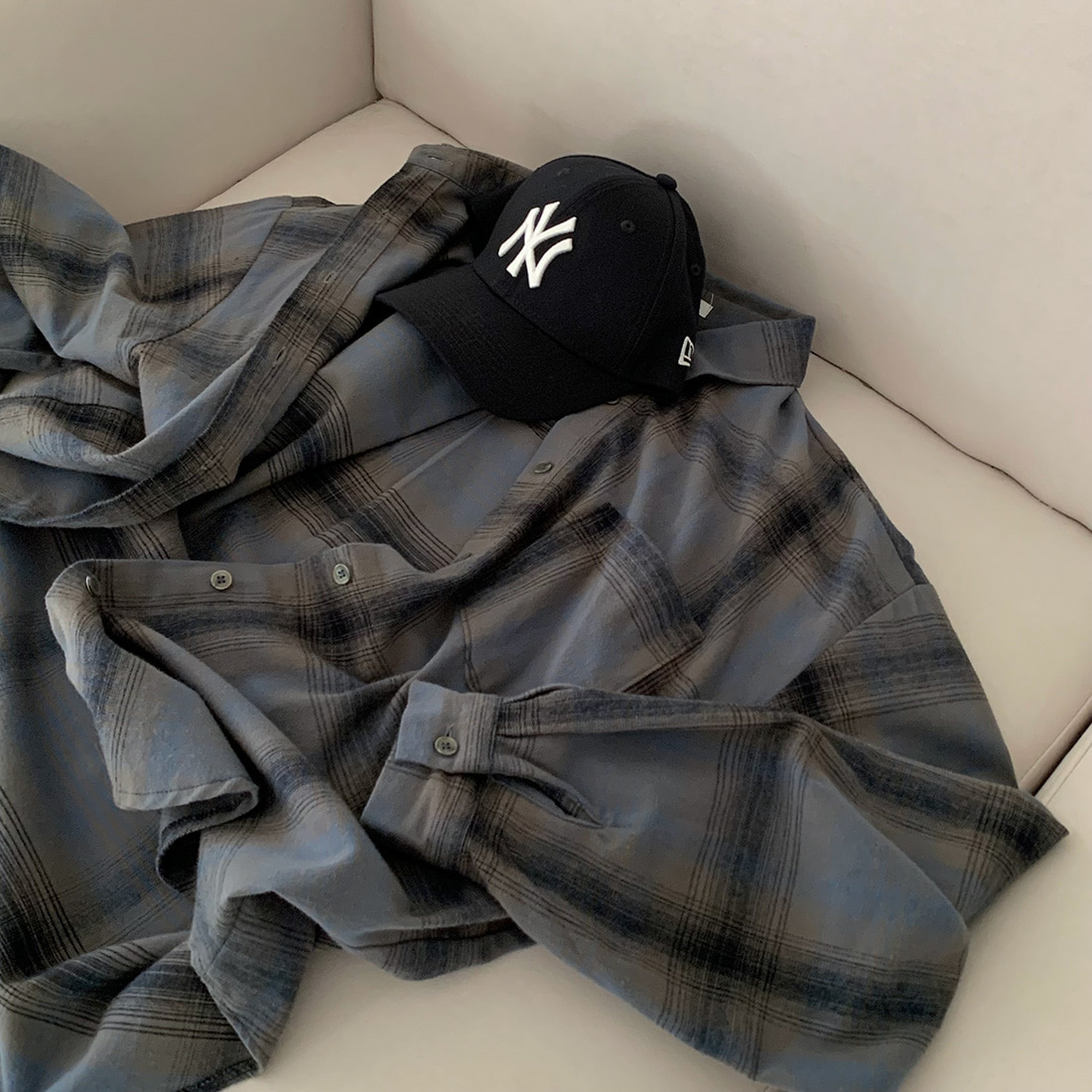 릴렉스 투톤 옴브레 루즈핏 체크 셔츠 블라우스 - nb