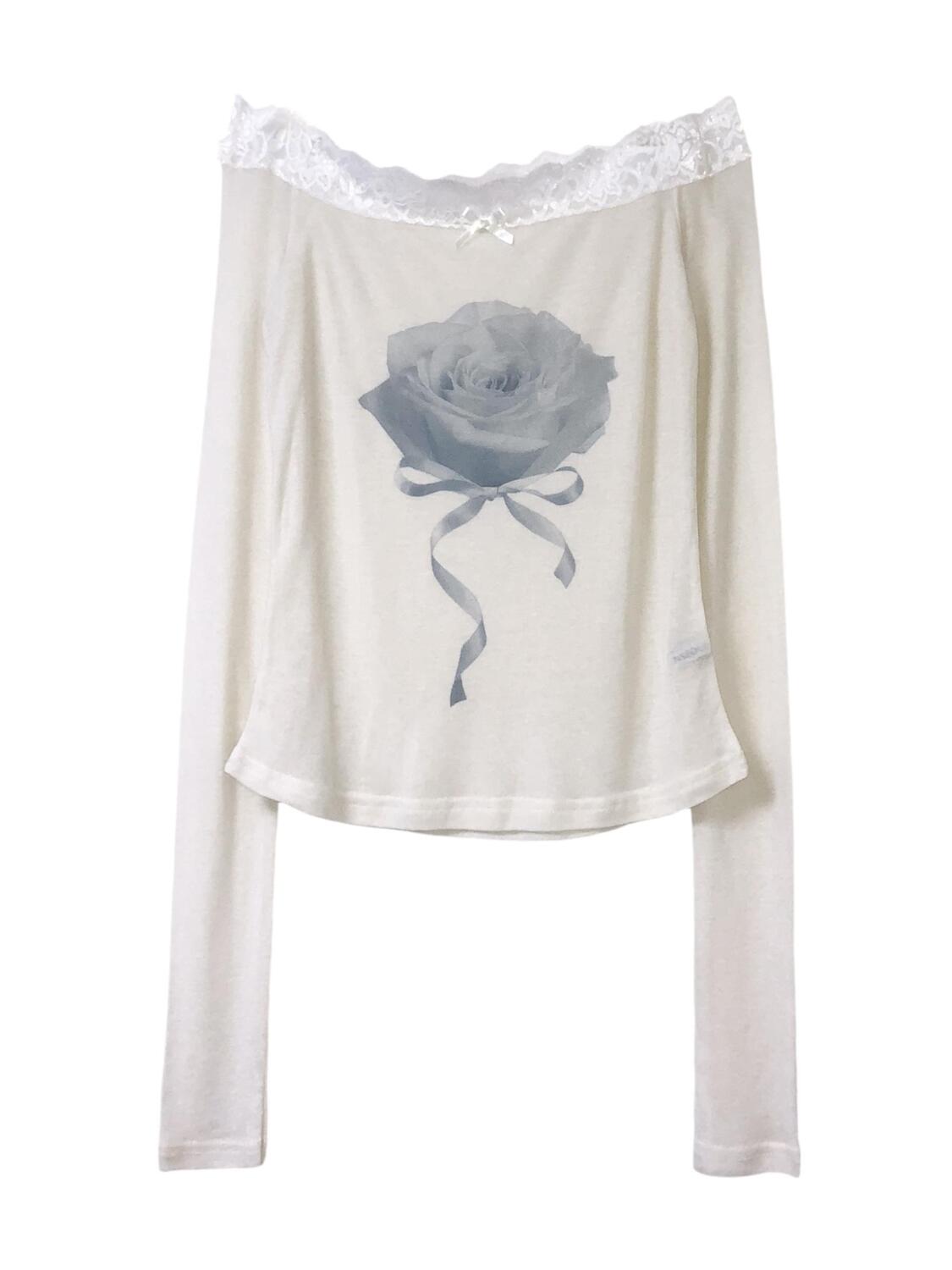 lace off-shoulder rose tee (3color) / 레이스 오프숄더 로즈 티