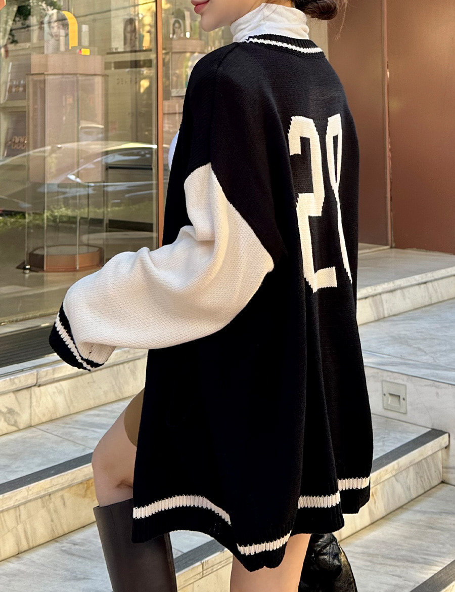 배색 가디건 드롭숄더 그레이 브라운 블랙 아크릴