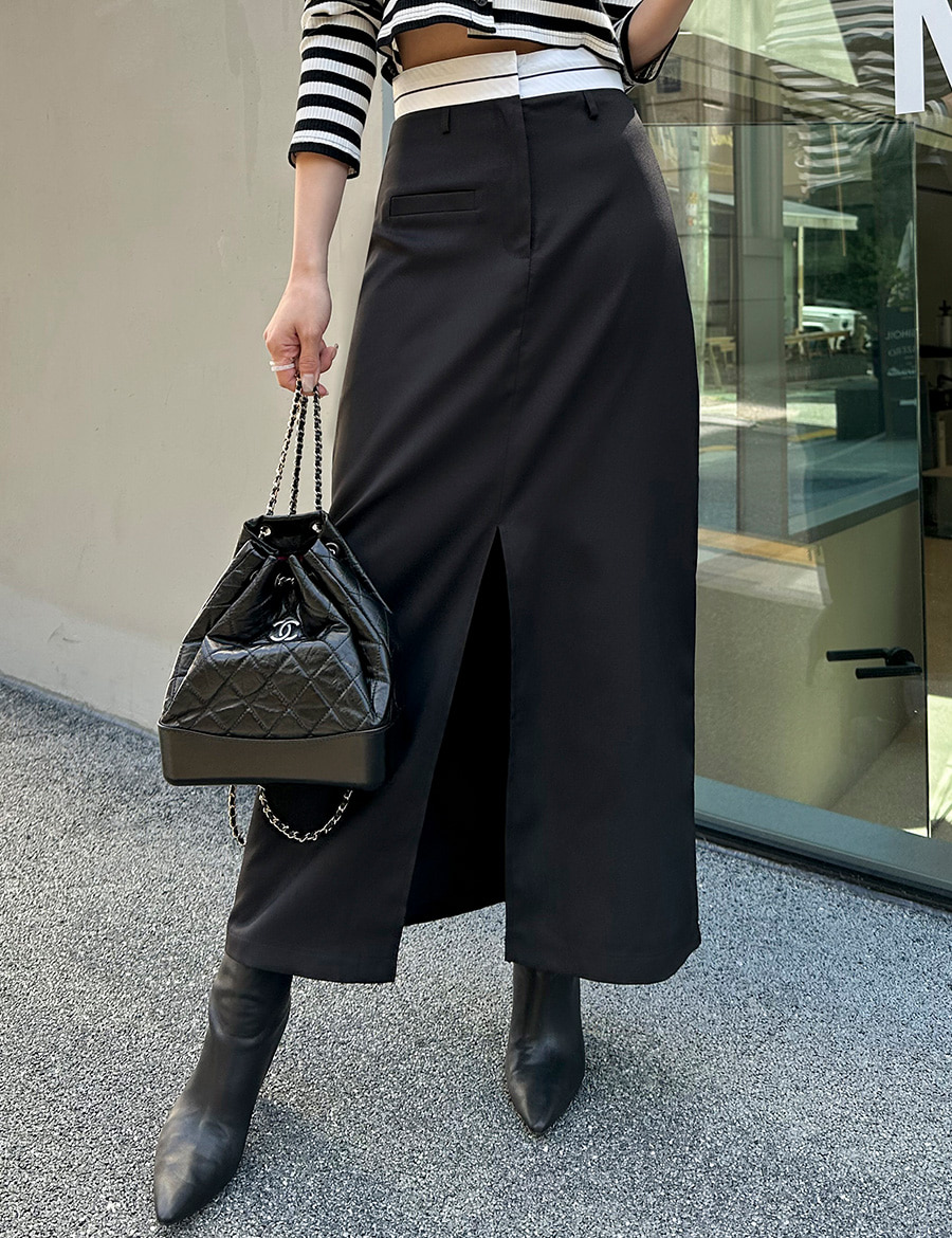 슬림 롱 스커트 트임 블랙 그레이 폴리