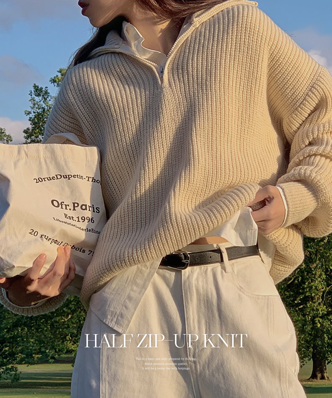 [도톰포근해🤎][휘뚤마뚤코디템] 디먼 하찌 반집업 긴팔니트티 (44~99) (빅사이즈니트티-데이트룩-직장인룩-체형커버-출근룩-하찌니트티-반집업니트티-데일리룩-꾸안꾸룩-트레이닝)