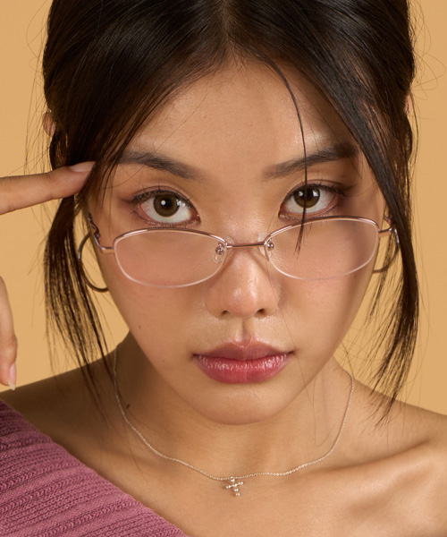 WOMEN 티타늄 긱시크 핑크 반 뿔테 블루라이트 차단 안경 [OBPK]