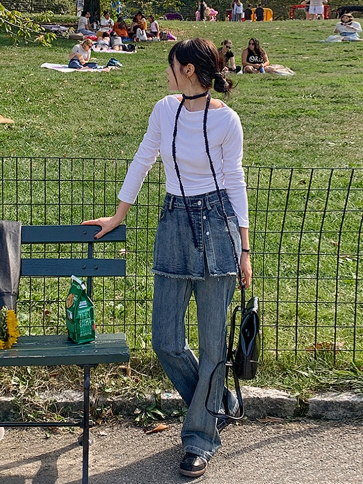 [25-36] 유텐디 뒷밴딩 랩스타일 부츠컷 데님 팬츠 청바지 (봄-가을-데일리룩-데이트룩-캐주얼룩-캠퍼스룩-러블리룩-하객룩-격식룩-출근룩-페미닌룩-빅사이즈-36사이즈-자체제작-레이어드-통통녀)