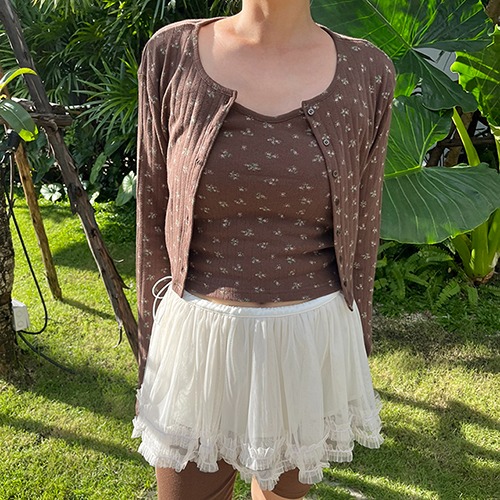 [나시+가디건] 하니 플라워 가디건 세트 (4color) - 꽃티 꽃탑 꽃나시 꽃가디건 꽃무늬 패턴 나시 끈나시 민소매 라운드넥 펀칭 스카치 투피스 레이어드 빈티지 SET *SOLD OUT*